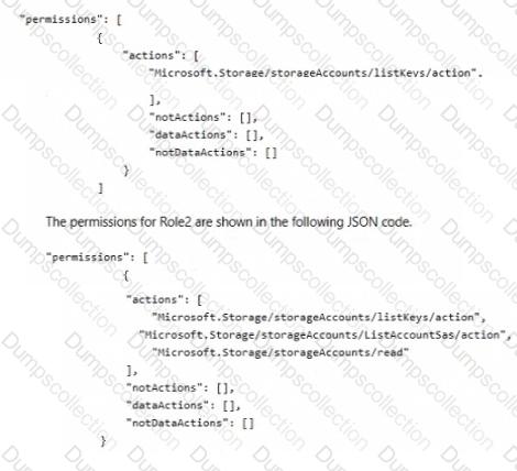 You have two custom Azure rotes named Role1 and Role2 that are scoped to RG1.