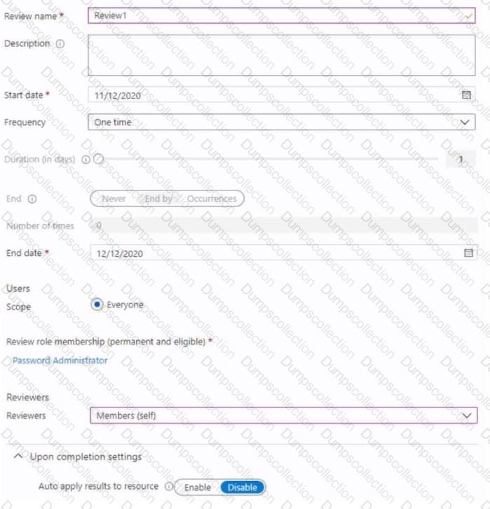 You configure an access review named Review1 as shown in the following exhibit Dates in the exhibit are in the MM/DD/YYYY format.