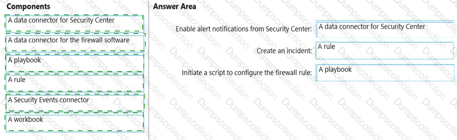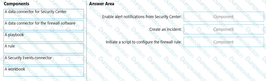 How should you configure Azure Sentinel to meet the requirements? To answer, drag the appropriate components to the correct requirements. Each component may be used once, more than once, or not at all. You may need to drag the split bar between panes or scroll to view content.