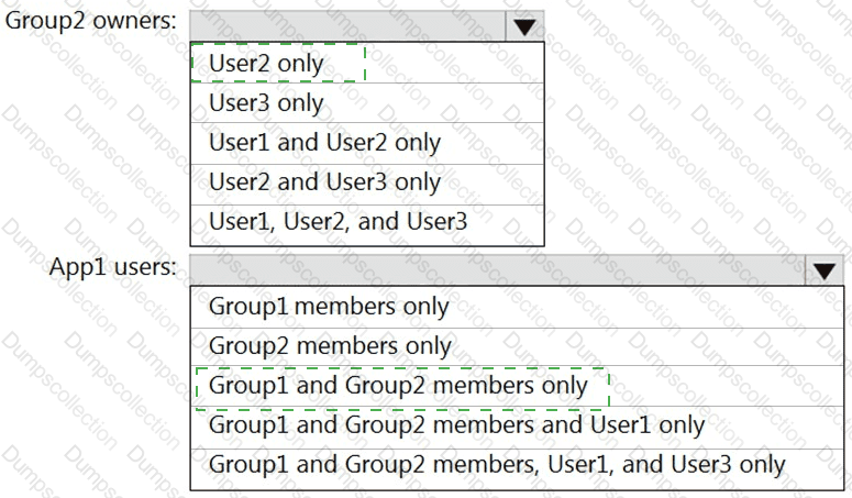 The user and group settings for App1 are configured as shown in the following exhibit.