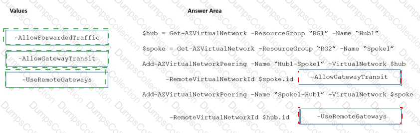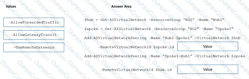How should you complete the PowerShell script? To answer, drag the appropr iate values to the correct targets. Each value may be used once, more than once, or not at all. You may need to drag the split bar between panes or scroll to view content.