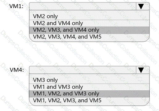 Which virtual machines can VM1 and VM4 ping successfully? To answer, select the appropriate options in the answer area.