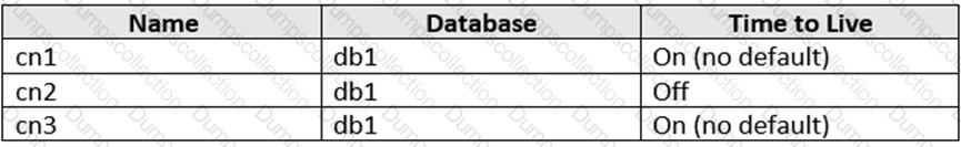 You have three containers in an Azure Cosmos DB Core (SQL) API account as shown in the following table.