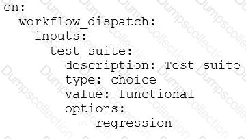 As a developer, you want to run a workflow from the Actions tab in GitHub. Which YAML snippet should you use to match the interface in this image?