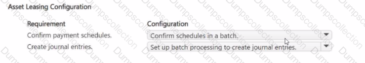 How should you configure asset leasing? To answer, select the appropriate options in the answer area.