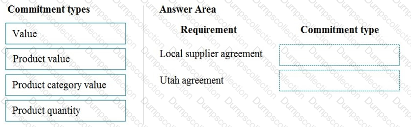 Which commitment types should you use? To answer, drag the appropriate commitment types to the correct requirements. Each commitment type may be used once, more than once, or not at all. You may need to drag the split bar between panes or scroll to view content.