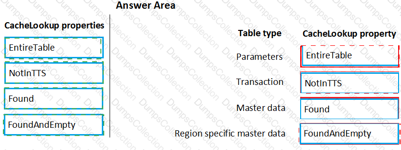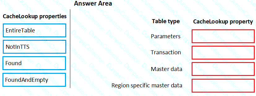 Which CacheLookup properties should you use? To answer, drag the CacheLookup properties to the correct table. Each property may be used once, more than once, or not at all. You may need to drag the split bar between panes or scroll to view content.