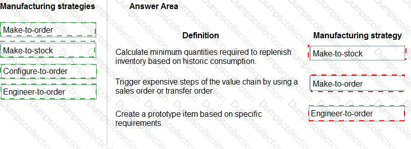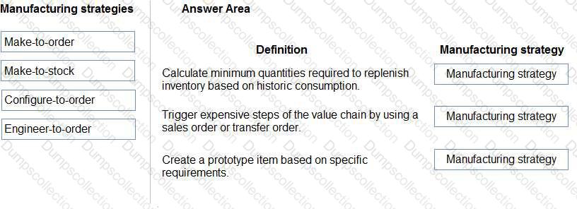 A company plans to implement Dynamics 365 Supply Chain Management. Match each manufacturing strategy to its definition.