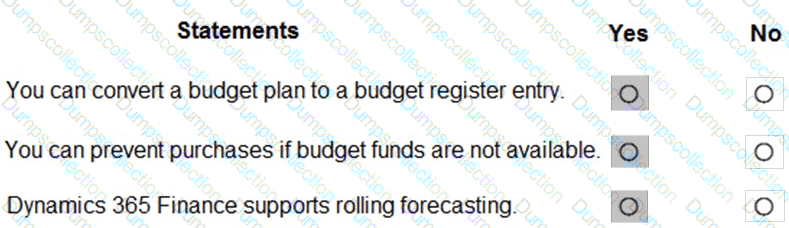 Instructions: For each of the following statements, select Yes if the statement is true. Otherwise, select No.