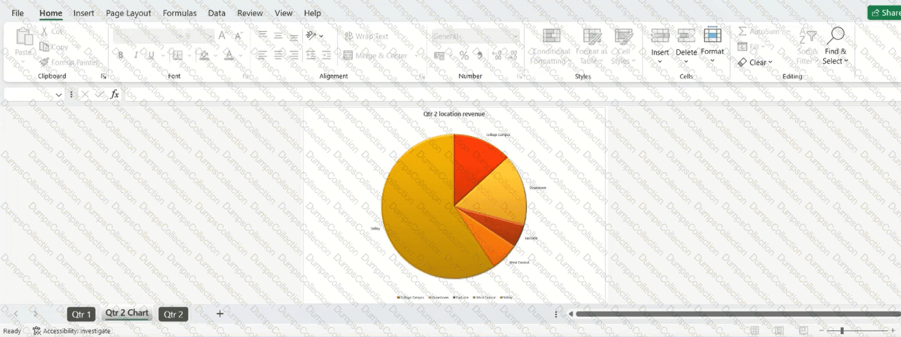 Without using the New Sheet button, move the pie chart on the Qtr 2 worksheet to its own chart sheet named Qtr 2 Chart.
