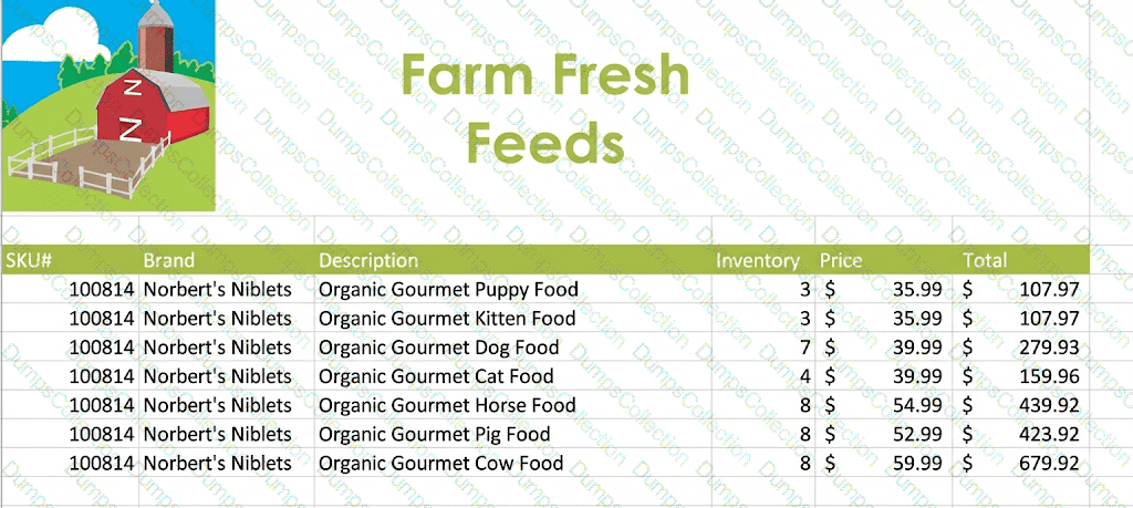 You are the assistant manager for a farm pet feed store. You are creating an inventory report.