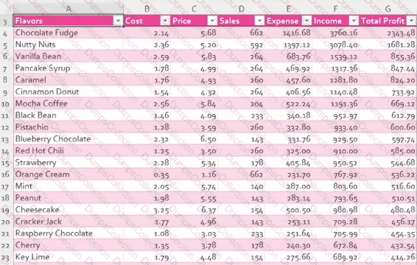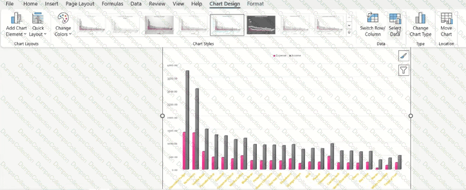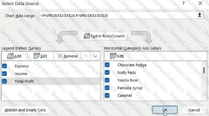 On the Chart worksheet, include the Total Profit data on the Flavor Expenses, Income and Profit chart.