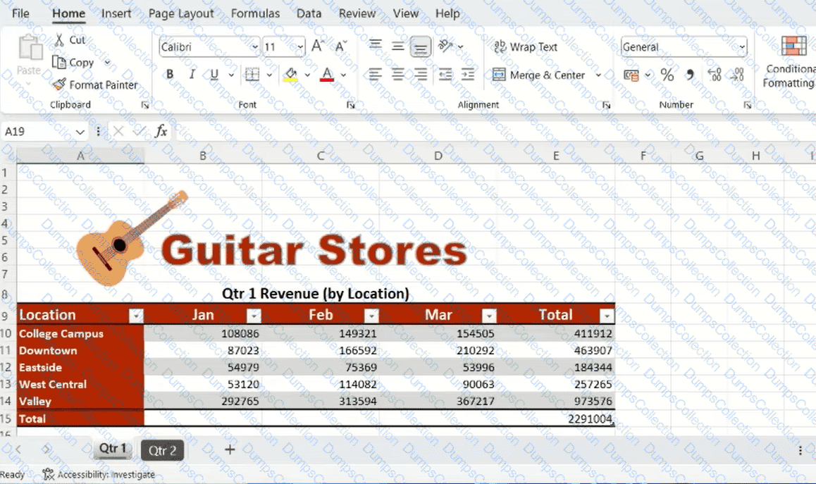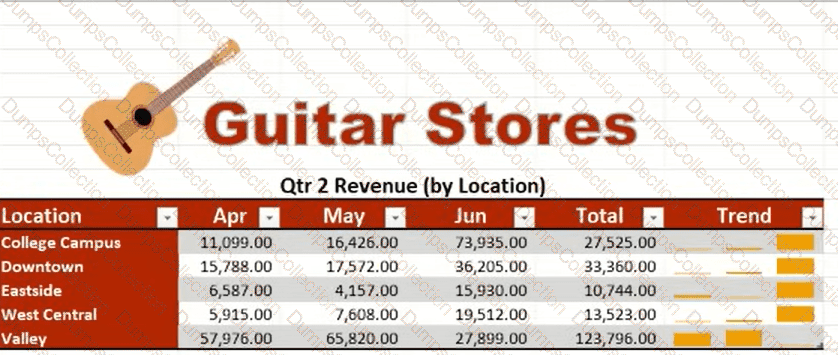 You and a partner own several Guitar Stores. You are analyzing your revenue from the past two quarters.