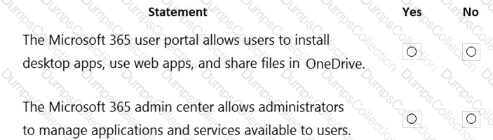 For each of the following statements, select Yes if the statement is true. Otherwise, select No.