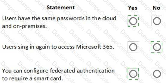 You are a Microsoft 365 administrator for a company. The company implementsfederated authentication and Azure AD Connect.