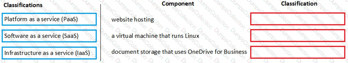 Match each component to its classification. To answer, drag the appropriate components from the column on the left to its classifications on the right. Each component may be used once, more than once, or not at all.