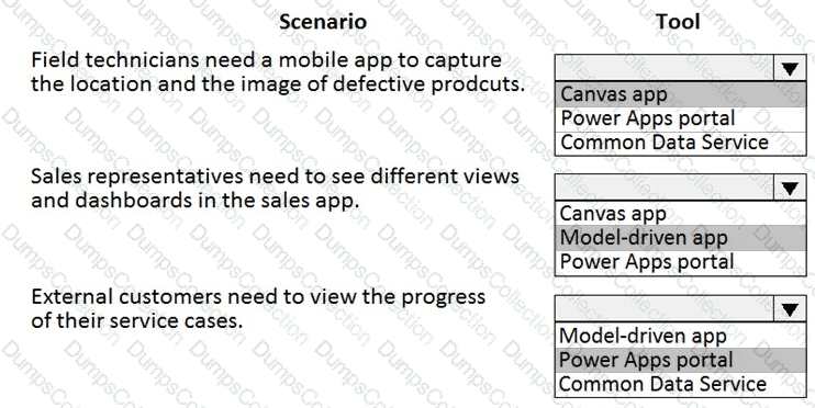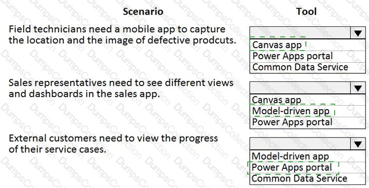 You need to recommend the appropriate types of Power Apps to use.