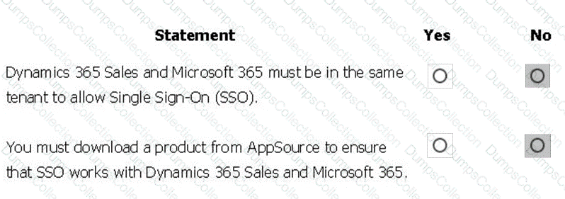 For each of the following statements, select Yes if the statement is true. Otherwise, select No.