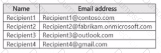 A user named User 1 sends link based, branded emails that are encrypted by using Microsoft Purview Advanced Message Encryption to the recipients shown in the following table.