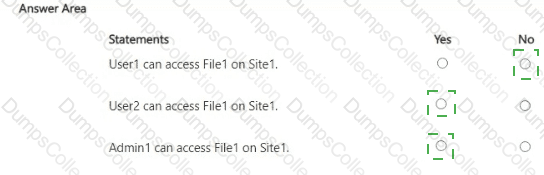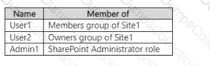 You have a Microsoft 365 E5 subscription that contains a Microsoft SharePoint Online site named Site1 and the users shown in the following table.