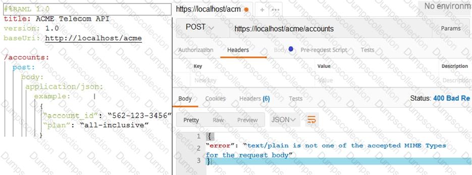 Refer to the exhibit. What should be changed to fix the 400 Bad Request error?