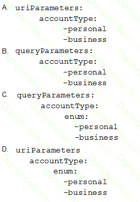 There are two types of accounts: personal and business. How can an accountType parameter be specified in RAML so http://localhost/acme/accounts?accountType=personal is a valid request to the implementation?