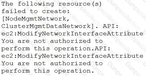 While creating a Cloud Volumes ONTAP cluster in Amazon Web Service (AWS) in Cloud Manager, you receive the message shown in the exhibit.