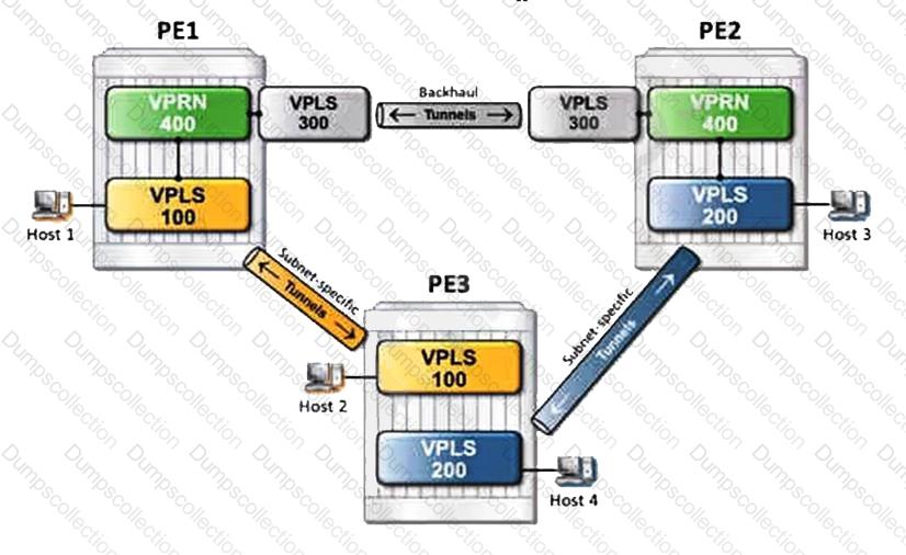 Routers PE1 and PE2 in the diagram exchange MP-BGP route updates that carry the route-target value associated with the EVPN service VPLS 300. What type of addressing information is included in those route updates?