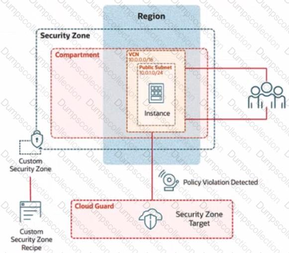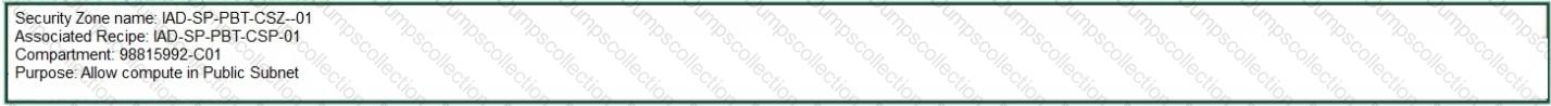 As an application requirement, the customer requires a compute instance in the public subnet. You therefore, need to configure Custom Security Zones that allow the creation of compute instances in the public subnet.