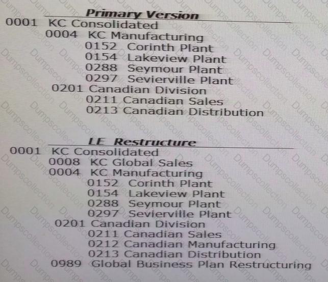 "Primary" and "LE_Restructure" are both versions in your DRM application and both have a hierarchy named "Legal Entity".