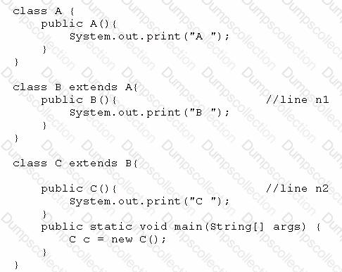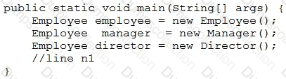 Which two options compile when placed at line n1 of the main method? (Choose two.)