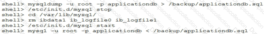 The ‘applicationdb’ is using InnoDB and consuming a large amount of file system space. You have a /backup partition available on NFS where backups are stored.