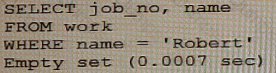 The table is populated with a range of values including jobs for Robert, John, and Katie. Now, examine this statement and output: