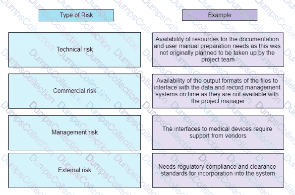 A hospital is running a project for one of their internal critical systems to manage billing patient data and record management along with consultation reports and input from physicians The project manager now needs to categorize the identified risks
