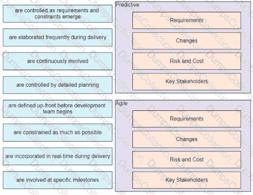 On a project to create the perfect paper airplane, the development of the airplane Is performed In iterations. The artwork to go on the wings and tail is done using a predictive approach. One of the stakeholders provides a requirement that conflicts with the product owner's requirements.