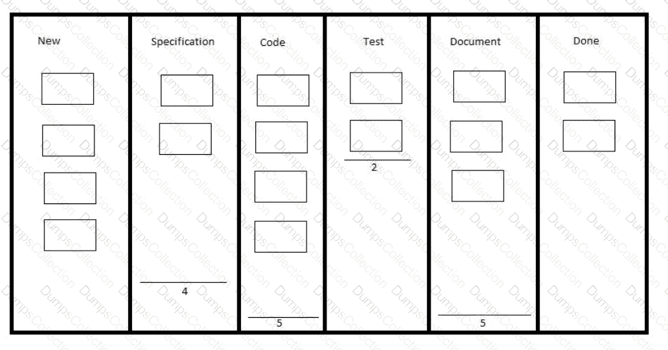 A project manager receives an update that the development flow is not going well. Some team members cannot start their work because the delivery is late. Looking at the Kanban board and the work in progress (WIP) lines, the project manager observes a bottleneck.