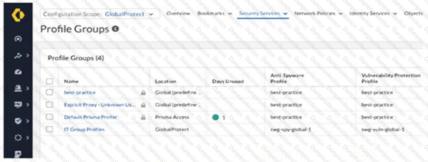 An intern is tasked with changing the Anti-Spyware Profile used for security rules defined in the GlobalProtect folder. All security rules are using the Default Prisma Profile. The intern reports that the options are greyed out and cannot be modified when selecting the Default Prisma Profile.