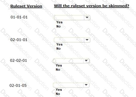 In the Answer Area, identify the ruleset versions that the skim operation considers when you perform a major version ruleset skim on ruleset ABC.