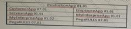 employeeapp. Each of these applications has additional built-on applications, including the duplicated MYEnterpriseApp application, which has two different versions in use. All applications are built on the same version of PegaRUUS.