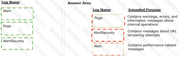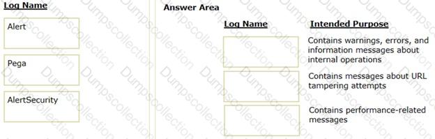 In the Answer Area, drag each log name on the left to its intended purpose on the right.