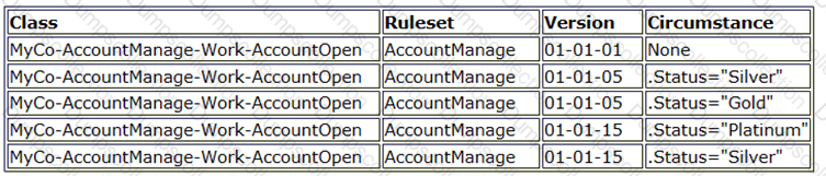 You update the application and increment the AccountManage ruleset version to 01-02-01. As part of this update, the circumstance .Status="Silver" is no longer needed by the application.