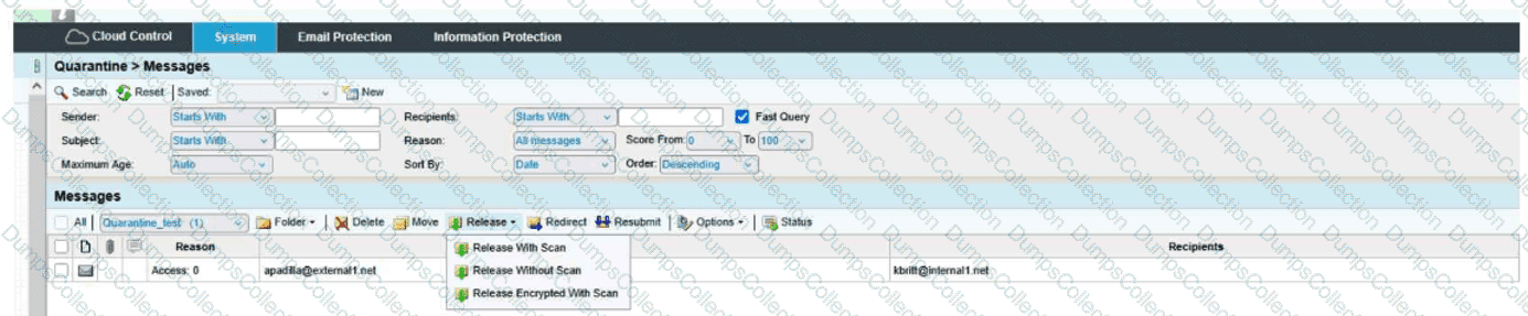 When you are attempting to release a message from the quarantine folder, you have the three choices shown here. The option of Release Encrypted With Scan will do which of the following?