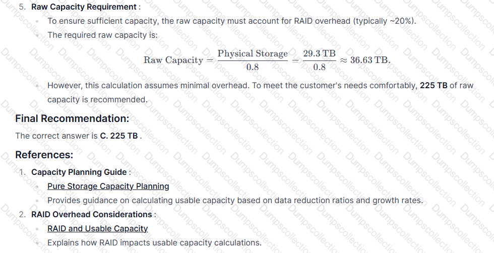 When sizing this solution, the SE needs to make sure that the customer will have enough capacity to last 3 years. Which raw capacity will meet these requirements?