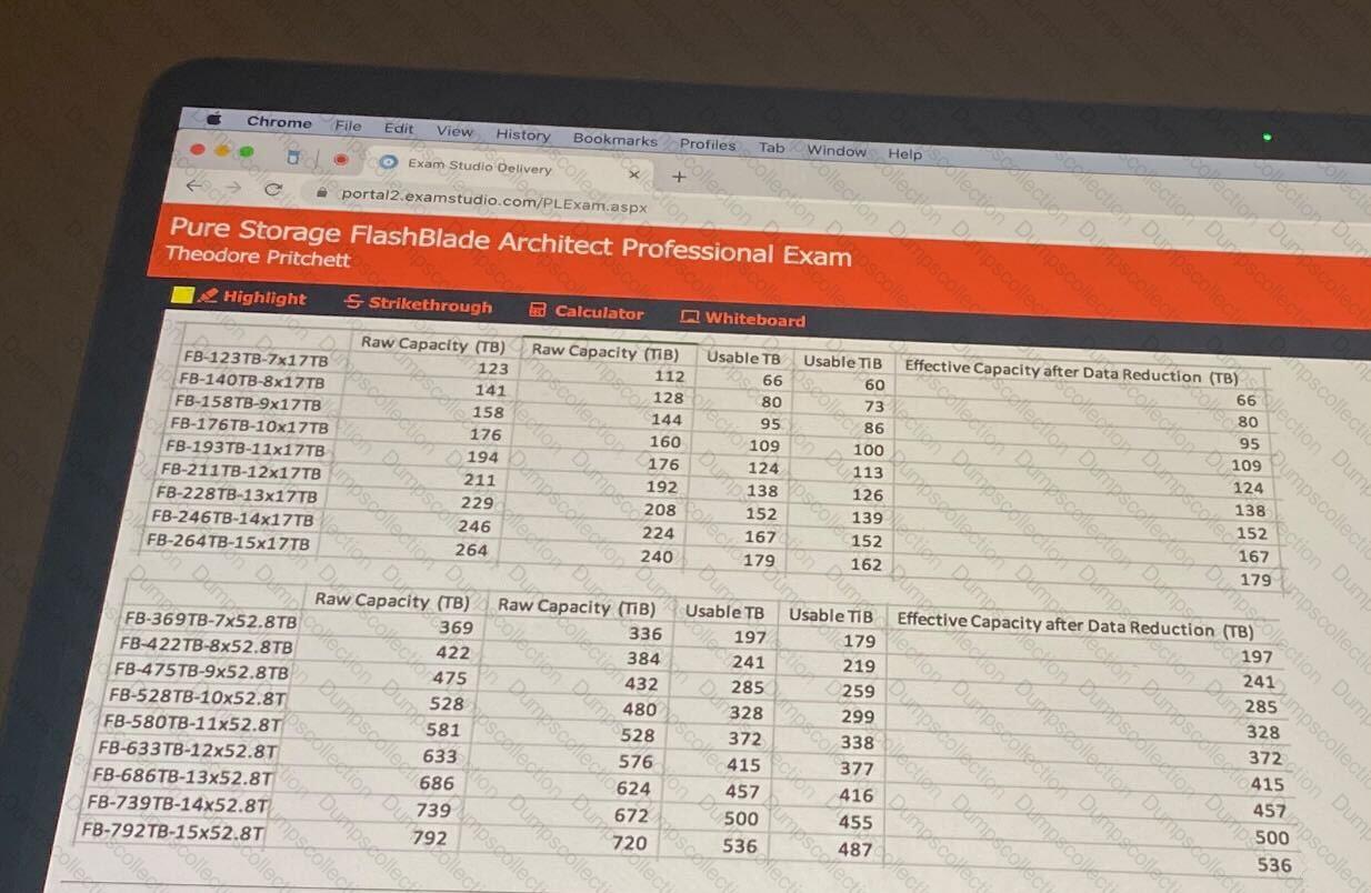 An architect need to create capacity sizing of FlashBlade to move data from a 6-year old EMC-Dell Isilon. The current Isilon solution consumes almost 1.3PB. There are three workloads: