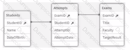 An app is being developed at a university to monitor student exam attempts- Three core tables are loaded into the app for Students, Exams, and Attempts. Students can attempt the same exam multiple times.