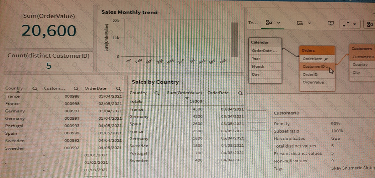 * The Sales by Country table shows a total OrderValue of 18,300 sales while the KPI shows a total OrderValue of 20,600.