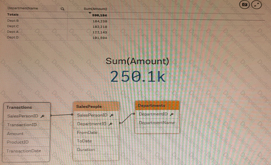 The data architect creates a summary of department performance and notices the values are incorrect. The total sales KPI shows the correct result.