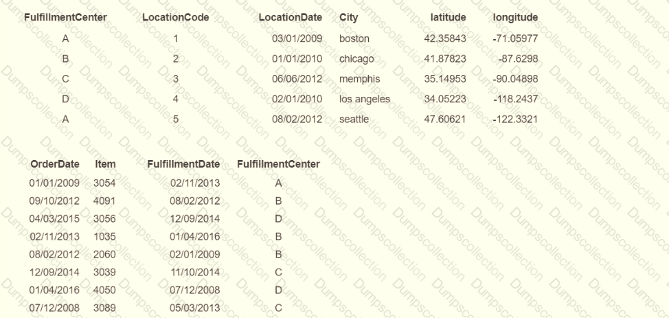A data architect has a data model that includes historical order fulfillment centers. The order fulfillment centers occasionally changed location. The history of order fulfillment must be tracked on a per center, per location basis.