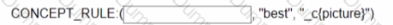 Complete the concept rule by adding the Boolean Operator that should be used to find concepts where the term "best" appears within five tokens of the term "picture"
