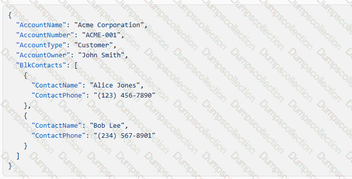 What JSON from the DRGetAccountDetails action would display all six values correctly in the OmniScript structure shown? BlkContacts is a Repeat Block.